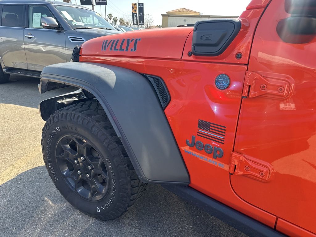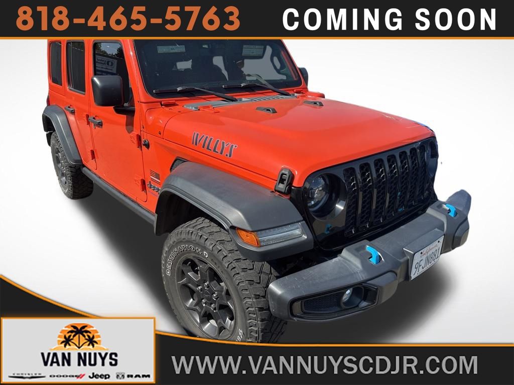 **BACKUP CAMERA**, **SIRIUS XM RADIO**, **BLUETOOTH WIRELESS / HANDS FREE**, **UCONNECT**, **HARD TOP**, 2.0L I4 DOHC, 1-Year SiriusXM Guardian Trial, 4G LTE Wi-Fi Hot Spot, 4xe 4-Wheel Drive Swing Gate Decal, 5-Year SiriusXM Traffic Service, 5-Year SiriusXM Travel Link Service, 8.4" Radio Group, 8.4" Touchscreen Display, 97 MPH Vehicle Max Speed Calibration, ABS brakes, Alloy wheels, Anti-Spin Differential Rear Axle, Apple CarPlay, Auto-Dimming Rear-View Mirror, Black Grille, Body Color 3-Piece Hard Top, Compass, Convenience Group, Electronic Stability Control, Emergency/Assistance Call, For Details, Visit DriveUconnect.com, Freedom Panel Storage Bag, Front dual zone A/C, Front LED Fog Lamps, Google Android Auto, GPS Antenna Input, GPS Navigation, HD Radio, Heated door mirrors, Illuminated entry, Integrated Center Stack Radio, Integrated Voice Command w/Bluetooth, LED Headlamp & Fog Lamp Group, LED Premium Reflector Headlamps, Low tire pressure warning, Molded-In-Color Fender Flares (2-Piece), MOPAR All-Weather Floor Mats, Normal Duty Suspension, Off-Road Info Pages, ParkView Rear Back-Up Camera, Passenger door bin, Quick Order Package 29W Willys, Radio: Uconnect 4C Nav w/8.4" Display, Rear Window Defroster, Rear Window Wiper/Washer, Remote keyless entry, SiriusXM Traffic Plus, SiriusXM Travel Link, Traction control, Universal Garage Door Opener, USB Host Flip, Wheels: 17" x 7.5" Black Aluminum, Willys, Willys 4xe Hood Decal.