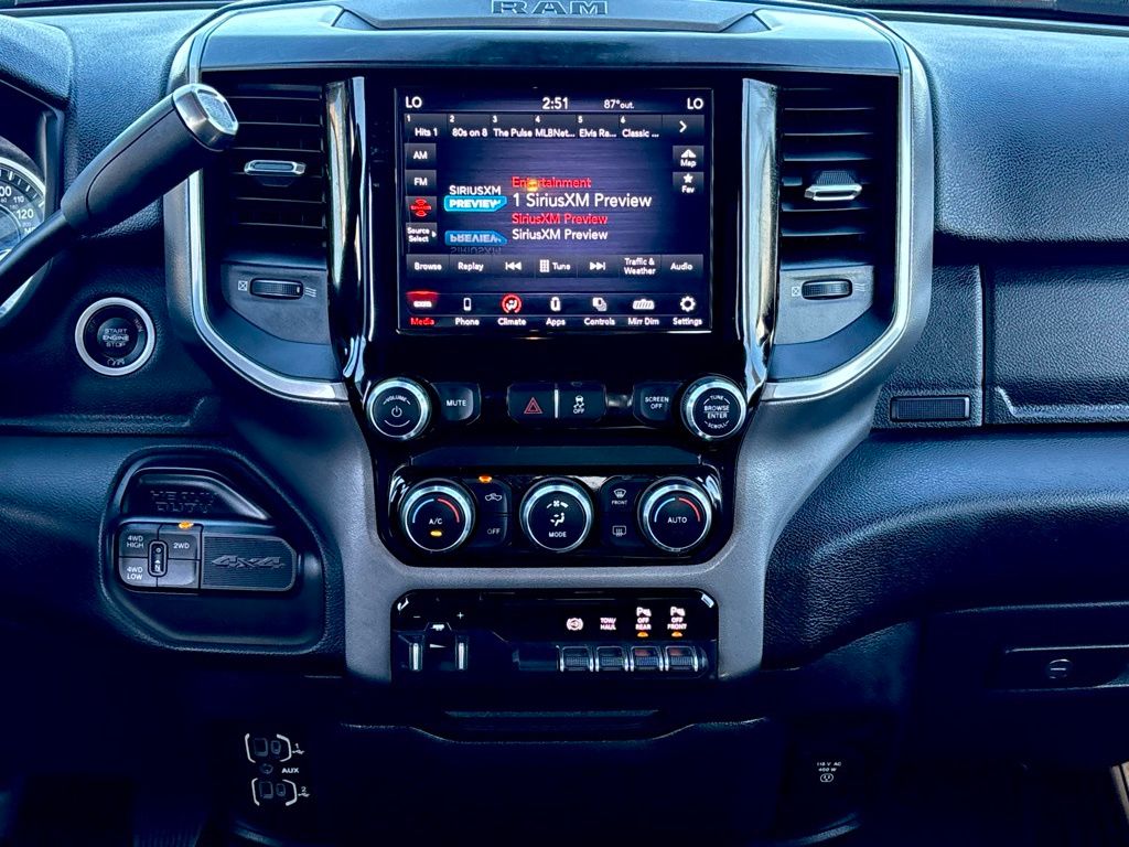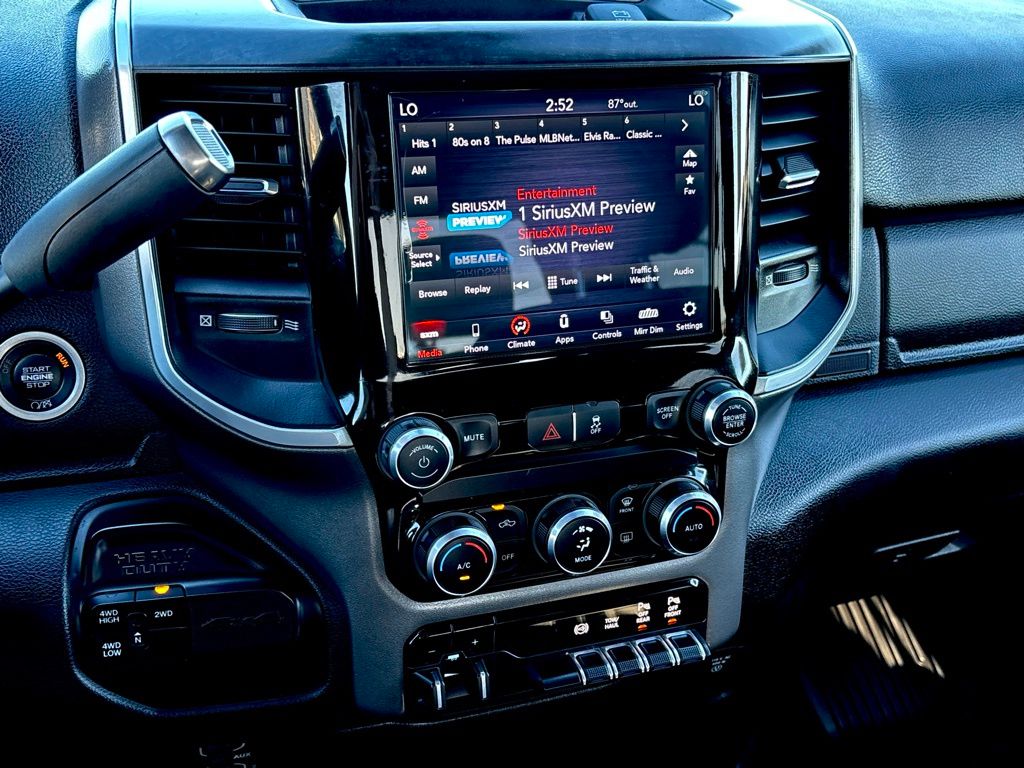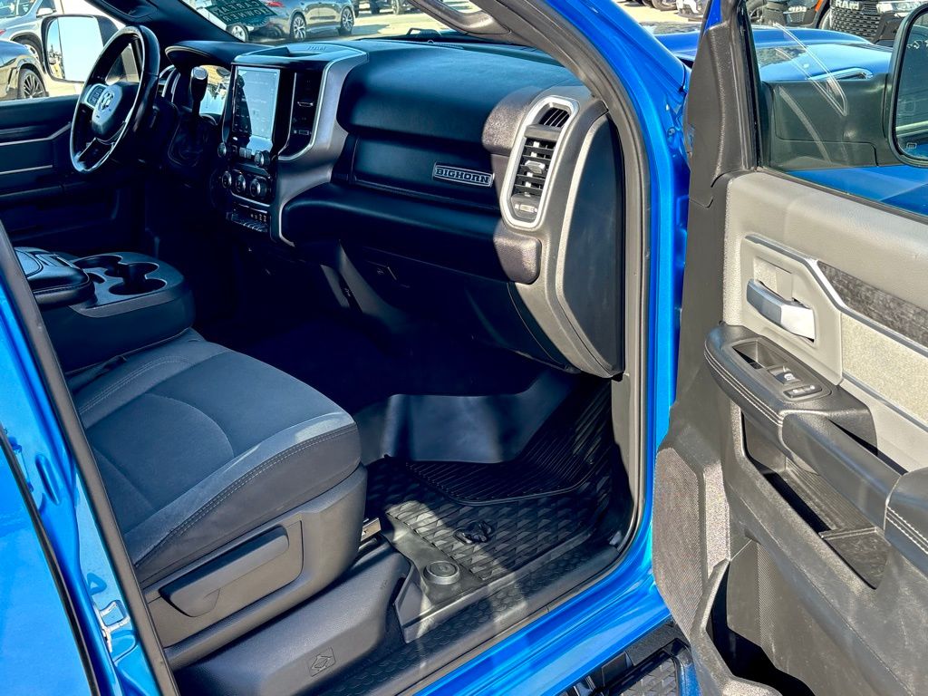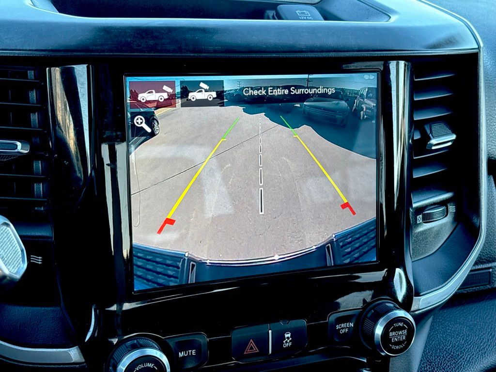 **NAVIGATION / GPS**, **BACKUP CAMERA**, **BLUETOOTH WIRELESS / HANDS FREE**, 2nd Row In Floor Storage Bins, Auto-Dimming Rear-View Mirror, Bed Utility Group, Cluster 3.5" TFT Color Display, Dual Glove Boxes, Foam Bottle Insert (Door Trim Panel), Footwell Courtesy Lamp, Front Fog Lamps, Glove Box Lamp, GPS Navigation, Leather Wrapped Steering Wheel, LED Bed Lighting, Level 1 Equipment Group, Locking Lower Glove Box, MOPAR Deployable Bed Step, MOPAR Spray In Bedliner, Navigation System, Power Adjustable Folding Heated Black Tow Mirrors, Power Adjustable Pedals, Power-Folding Mirrors, Premium Cloth 40/20/40 Bench Seat, Protection Group, Quick Order Package 2HZ Big Horn, Radio: Uconnect 4 w/8.4" Display, Rear Dome w/On/Off Switch Lamp, Steering Wheel Mounted Audio Controls, Sun Visors w/Illuminated Vanity Mirrors, Universal Garage Door Opener, Wheels: 18" x 8.0" Polished Aluminum.