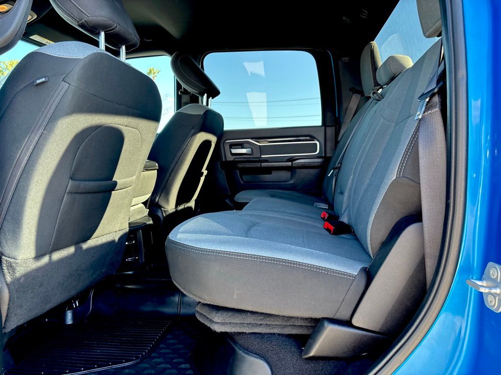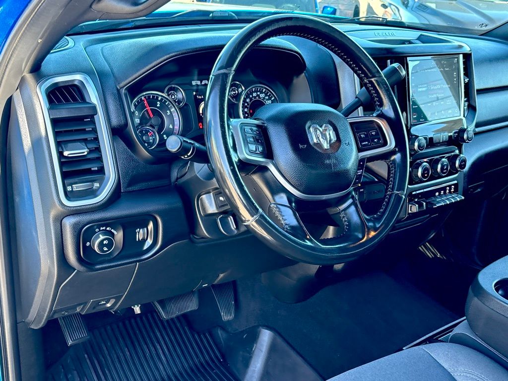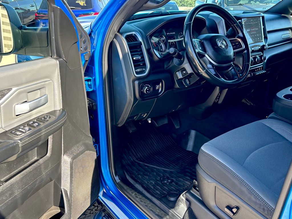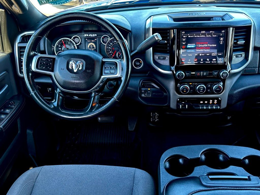 **NAVIGATION / GPS**, **BACKUP CAMERA**, **BLUETOOTH WIRELESS / HANDS FREE**, 2nd Row In Floor Storage Bins, Auto-Dimming Rear-View Mirror, Bed Utility Group, Cluster 3.5" TFT Color Display, Dual Glove Boxes, Foam Bottle Insert (Door Trim Panel), Footwell Courtesy Lamp, Front Fog Lamps, Glove Box Lamp, GPS Navigation, Leather Wrapped Steering Wheel, LED Bed Lighting, Level 1 Equipment Group, Locking Lower Glove Box, MOPAR Deployable Bed Step, MOPAR Spray In Bedliner, Navigation System, Power Adjustable Folding Heated Black Tow Mirrors, Power Adjustable Pedals, Power-Folding Mirrors, Premium Cloth 40/20/40 Bench Seat, Protection Group, Quick Order Package 2HZ Big Horn, Radio: Uconnect 4 w/8.4" Display, Rear Dome w/On/Off Switch Lamp, Steering Wheel Mounted Audio Controls, Sun Visors w/Illuminated Vanity Mirrors, Universal Garage Door Opener, Wheels: 18" x 8.0" Polished Aluminum.